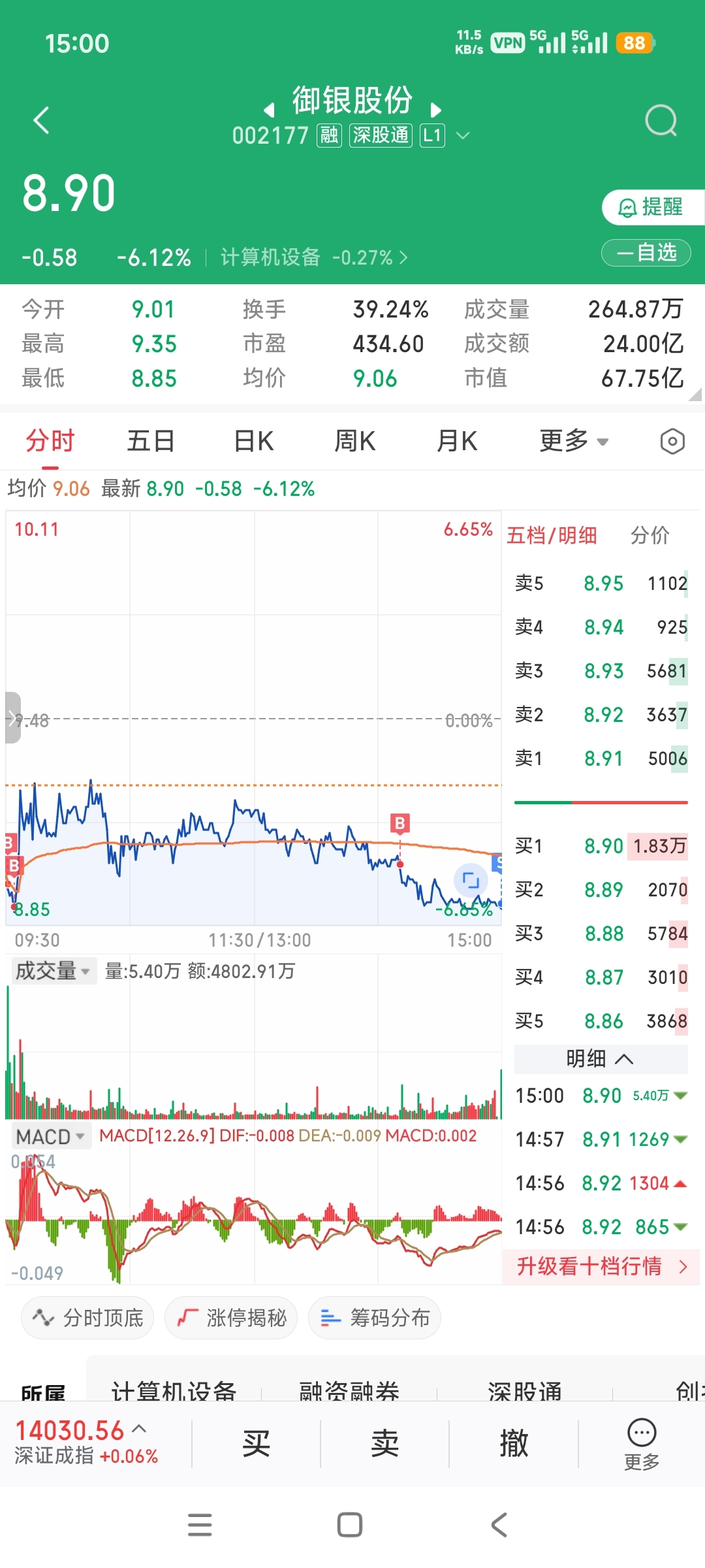 $御银股份(SZ002177)$ 心态崩了啊,