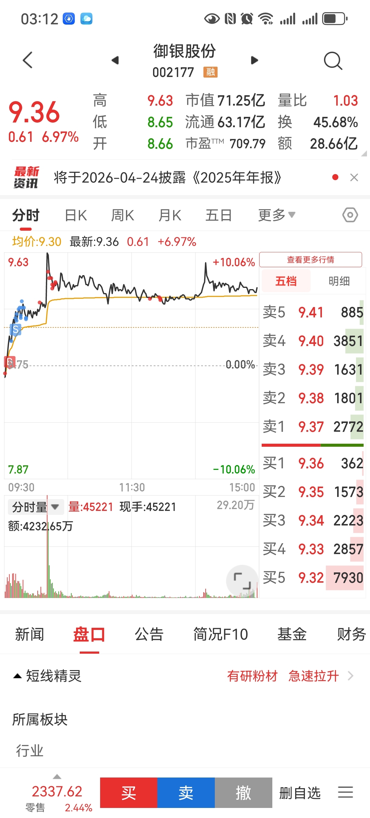 $御银股份(SZ002177)$ 又是做反t的一天,开心,