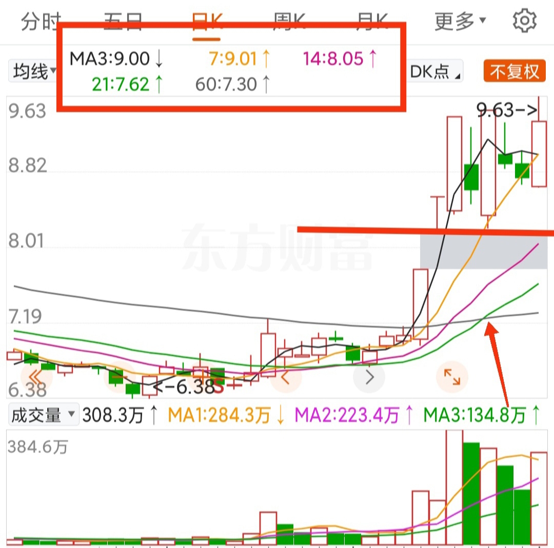 其次,因为前面走过7日的反包,所以更多要关注14日线的机会。也就在8.1到8.3的区间。可以将该区间作为止损区域。