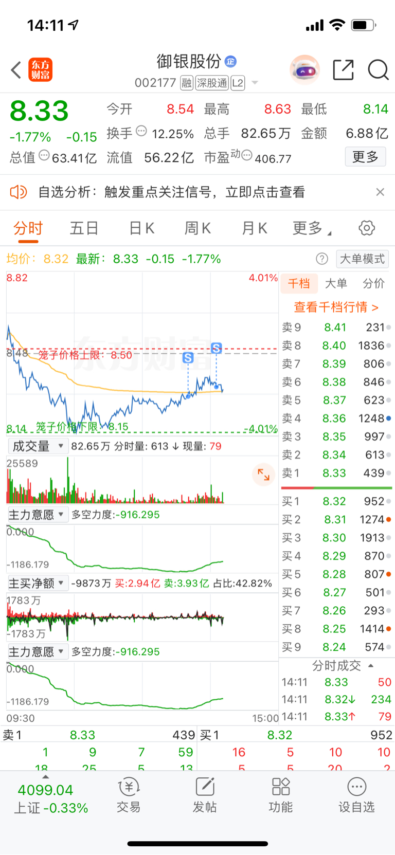 $御银股份(SZ002177)$ 走了,我一般一走就会拉涨停2个板
