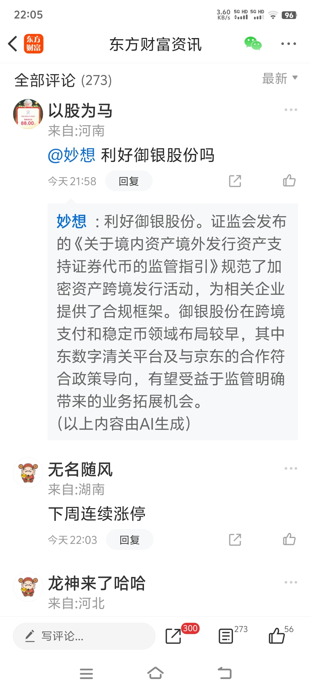 温馨提示: 1.根据《证券法》规定,禁止编造、传播虚假信息或者误导性信息,扰乱证券市场;2.用户在本社区发表的所有资料、言论等仅代表个人观点,与本网站立场无关,不对您构成任何投资建议。用户应基于自己的独立判断,自行决定证券投资并承担相应风险。《东方财富社区管理规定》