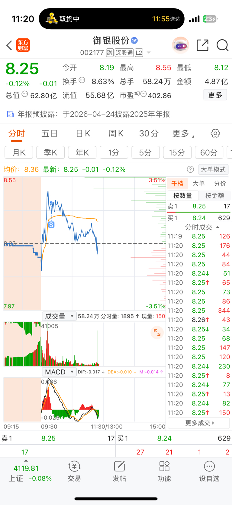 $御银股份(SZ002177)$ 我还是看好的,调整也是要的