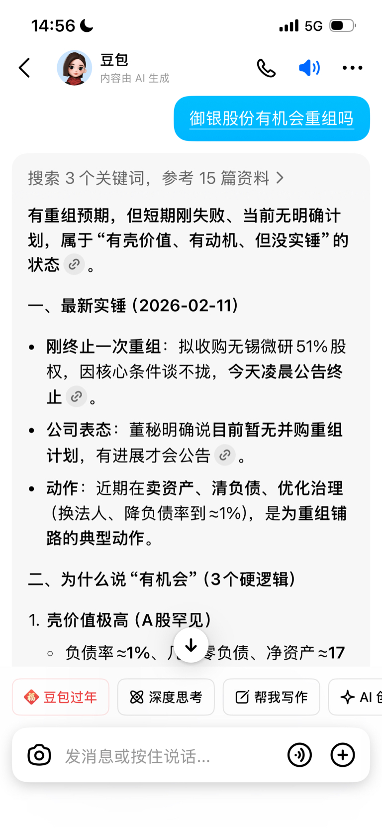 $御银股份(SZ002177)$ 下一次谈重组要等几个月后了,哎