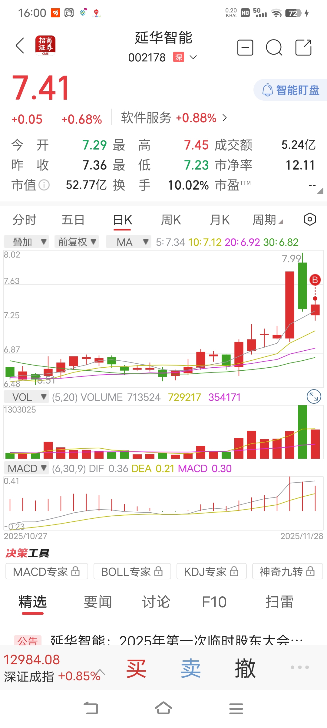 $延华智能(SZ002178)$ 已经上车了,希望有主力来抬轿