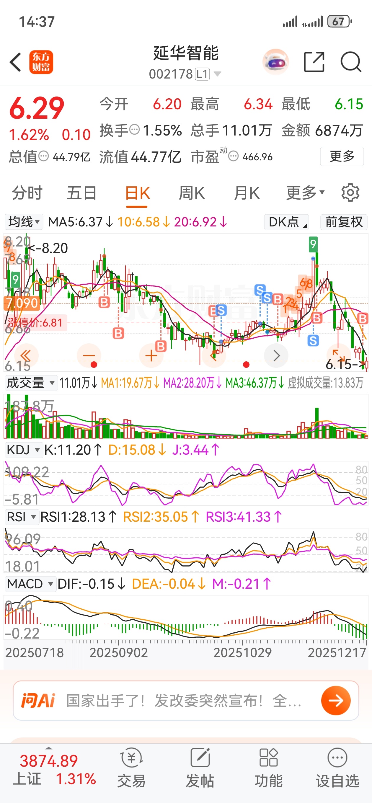 $延华智能(SZ002178)$ 还有8块多的吗?