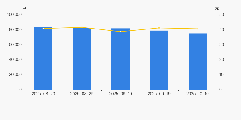 2025年8月20日至今,公司股东户数显著下降,区间跌幅为10.50%。2025年8月20日至2025年10月10日区间股价下降0.44%。