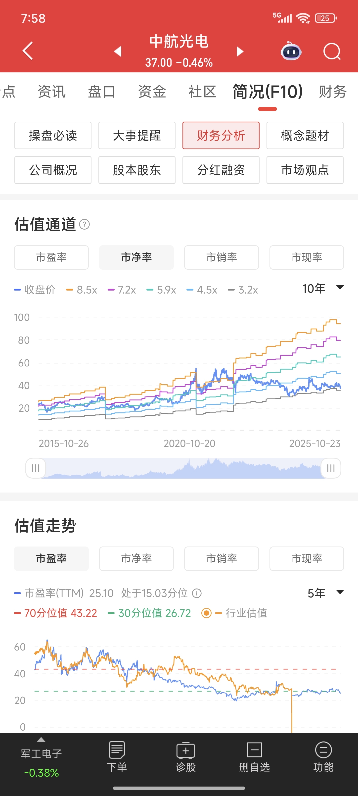 中航光电处于市净率近10年来的绝对低位。股价越低,下跌越凶。学习时报:稳定股市。