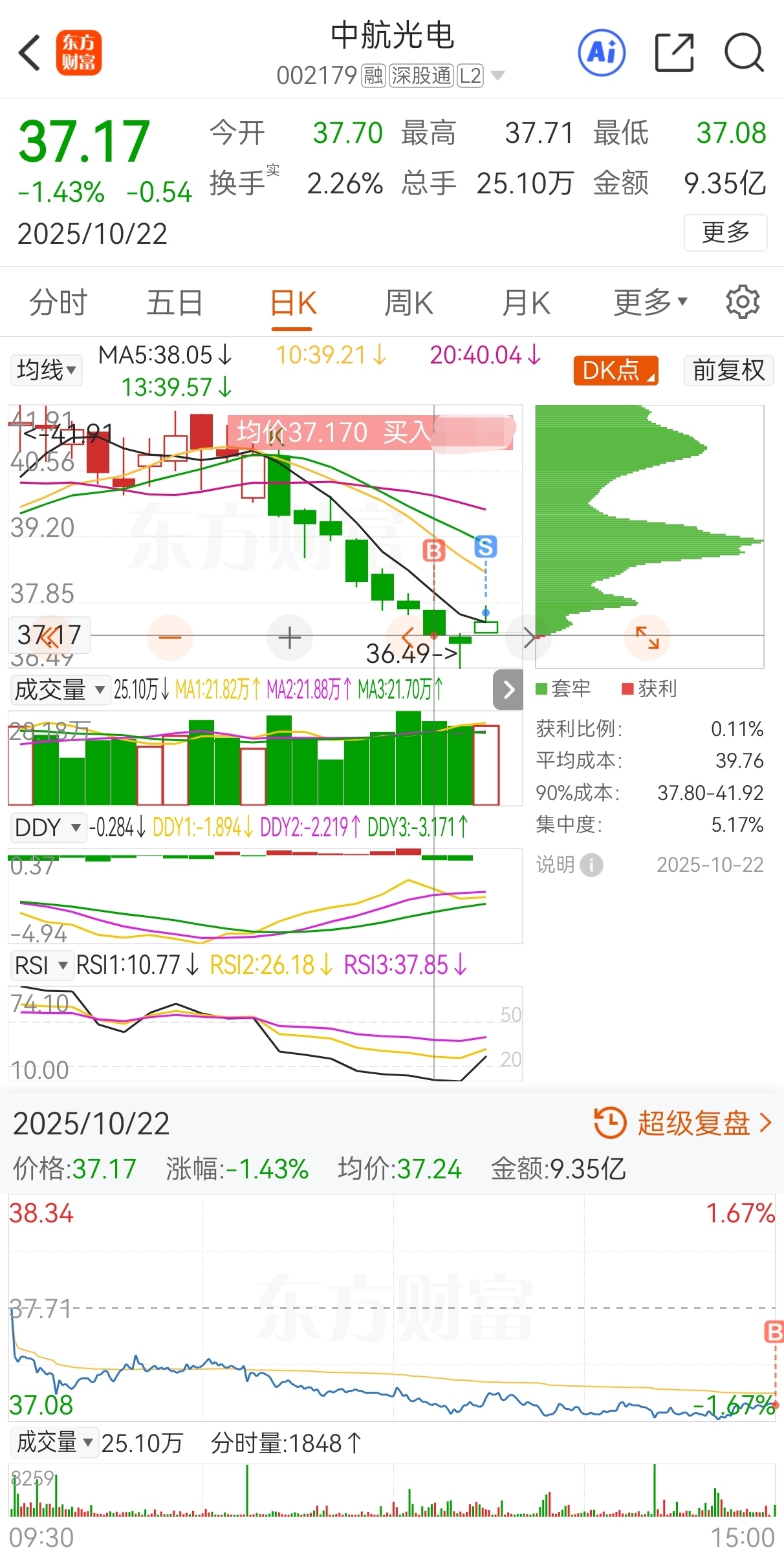 $中航光电(SZ002179)$ 原计划今买明卖,实际37.17买,第二天持股不动,37.64卖,实盘短线套利中航光电,成功收米走人!
