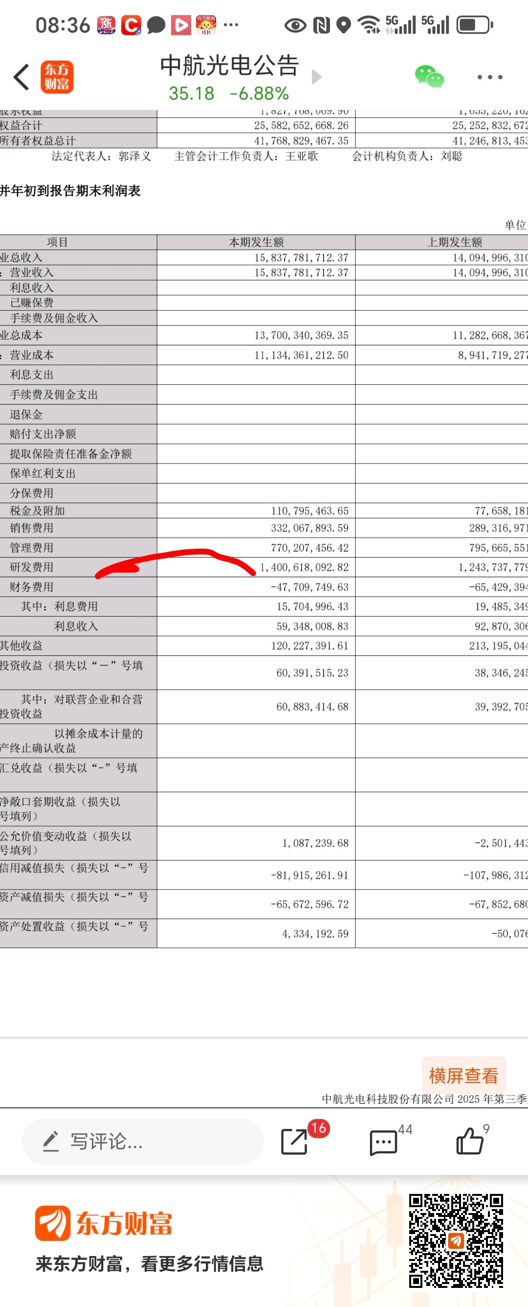 $中航光电(SZ002179)$ 利润下滑一点,而销售收入增加,利润下滑只是费用增加,研发费用比上期增加1.6亿是好事,大家有什么可看空的