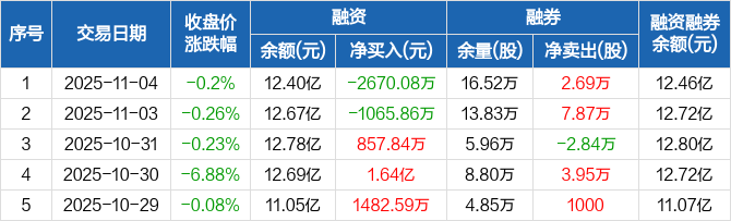中航光电:融资净偿还2670.08万元,融资余额12.4亿元(11-04)
