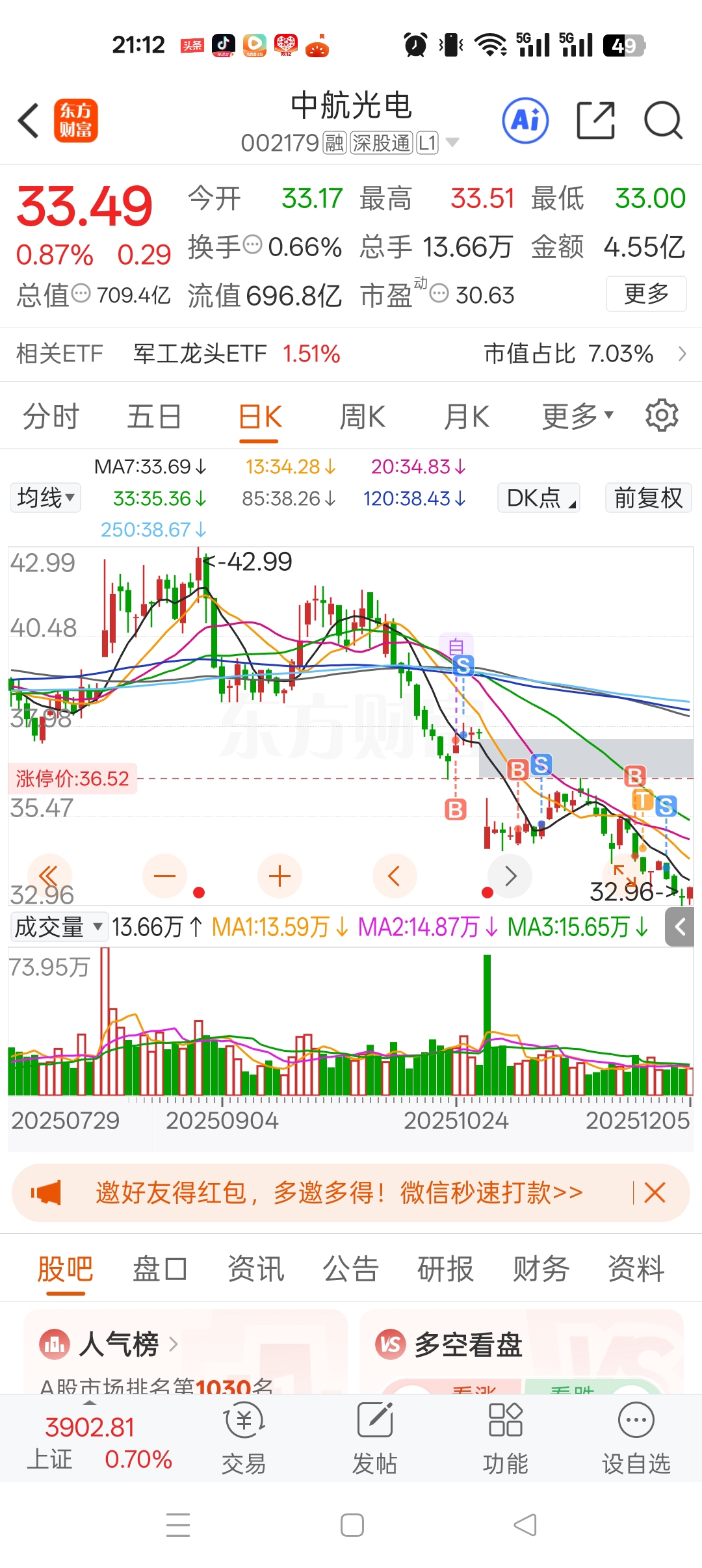 #炒股日记# 不认栽不行呀,后来一查,各大基金公司都在轮番抛售,我说怎么抄底抄两次都抄在半空中,不知道是公司有雷还是怎么了,都是中航系你怎么就这么不受待见,别的都鸡犬升天了,你还在砸根本买不完根本买不完!