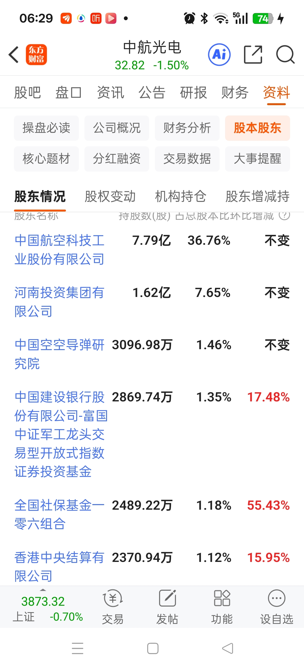 $中航光电(SZ002179)$ 各位看看中航光电十大股东目前都是谁,以及他们增减持情况。相信能关注和持有中航光电的股友们都是有共同理想和信念的。我是三季报公布前进来的,赌三季报失败被套。 但即使被套,却越来越有信心。我相信中航光电跌不到哪里去了,但要起来,必须要等这波追热点垃圾票的风过了才行。等摩尔易中天寒武纪这些票偃旗息鼓,中航光电才会起飞。