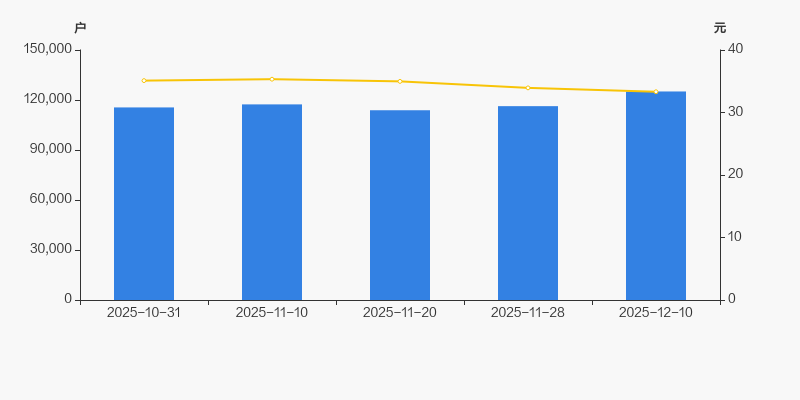 2025年10月31日至今,公司股东户数有所增长,区间涨幅为8.28%。2025年10月31日至2025年12月10日区间股价下降5.07%。