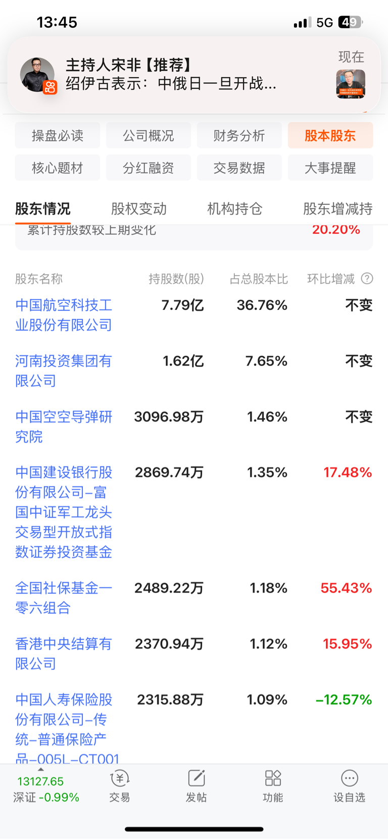 $中航光电(SZ002179)$ 商业航空补涨,社保和香港中央结算9.30新进,就没涨过,我不信他们不赚钱。今天看启动追进来,看能不能吃到肉?