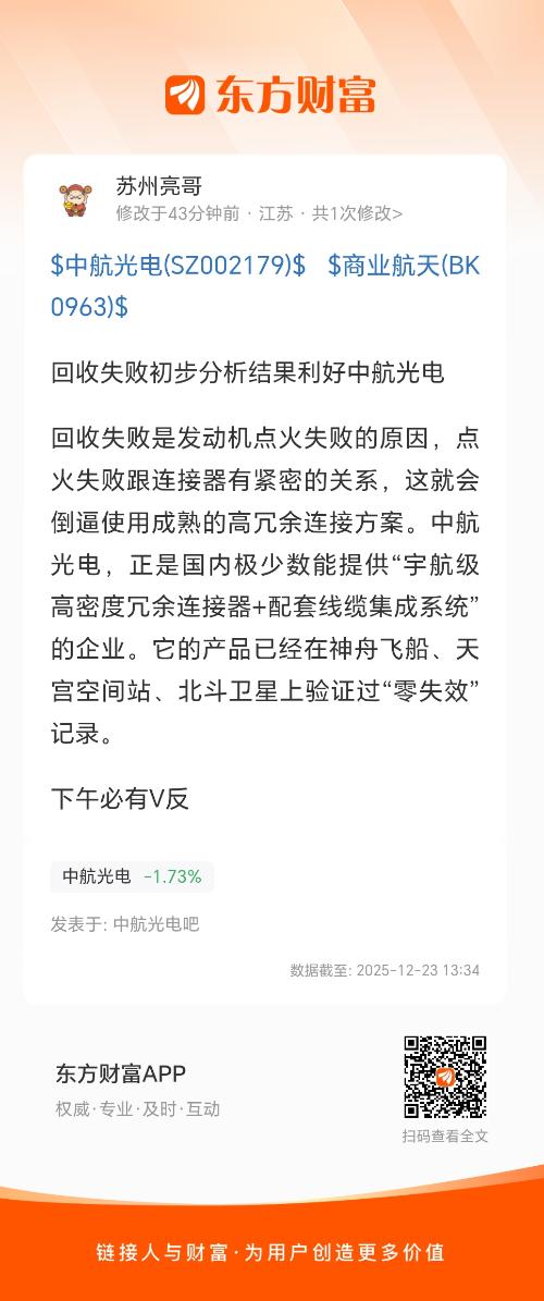 $中航光电(SZ002179)$ $商业航天(BK0963)$