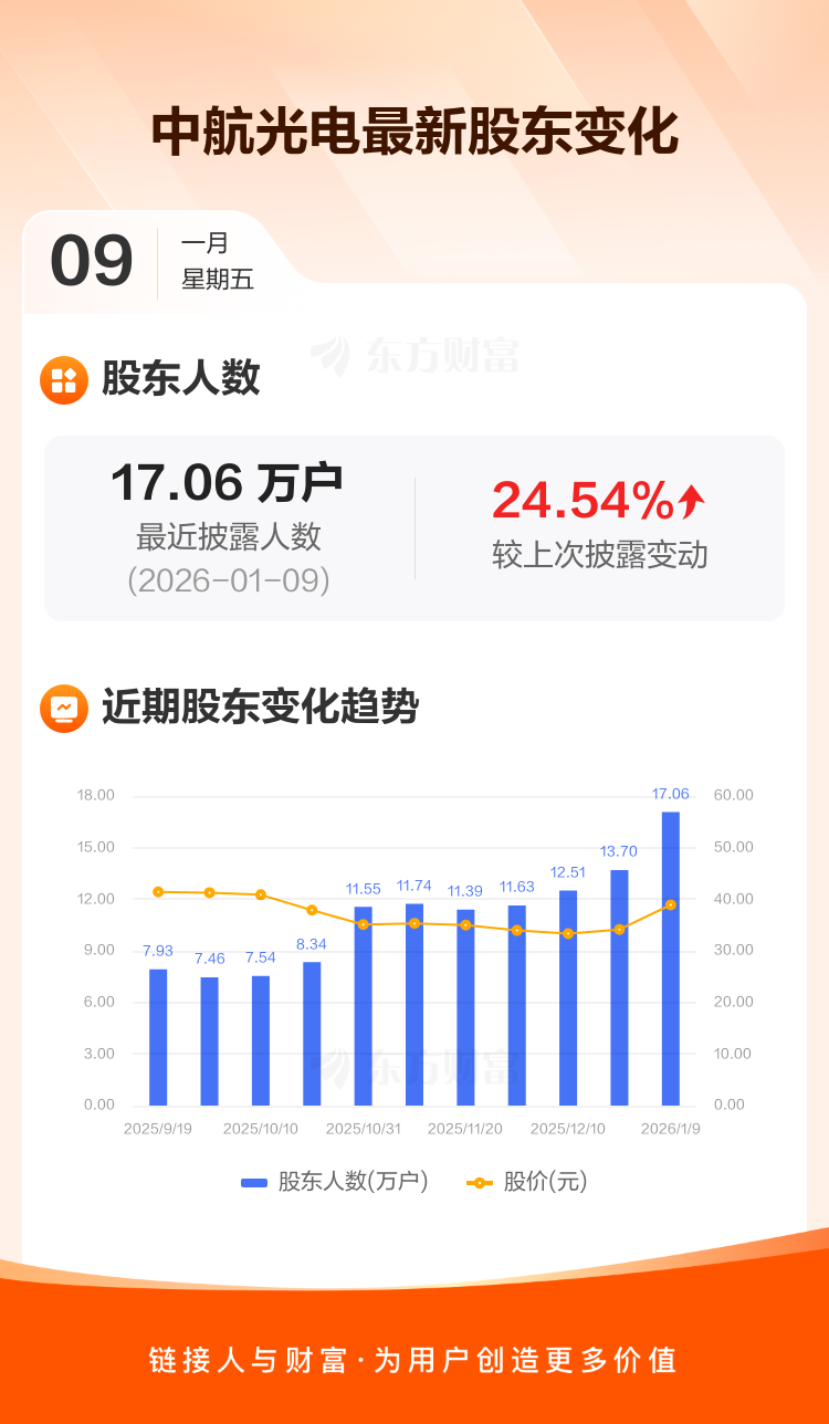 中航光电:截至1月9日最新股东户数17.06万户,较上期增加24.54%
