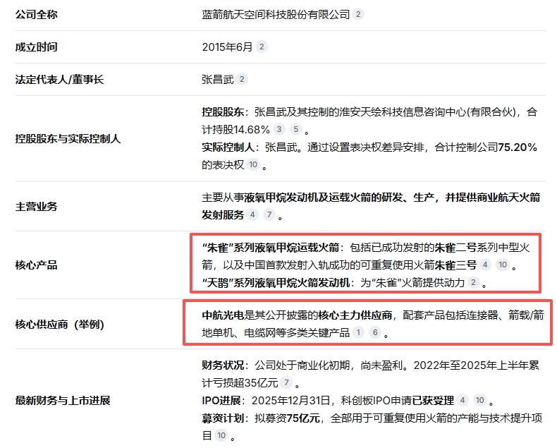 中航光电在互动平台表示,公司系蓝箭航天核心主力供应商。