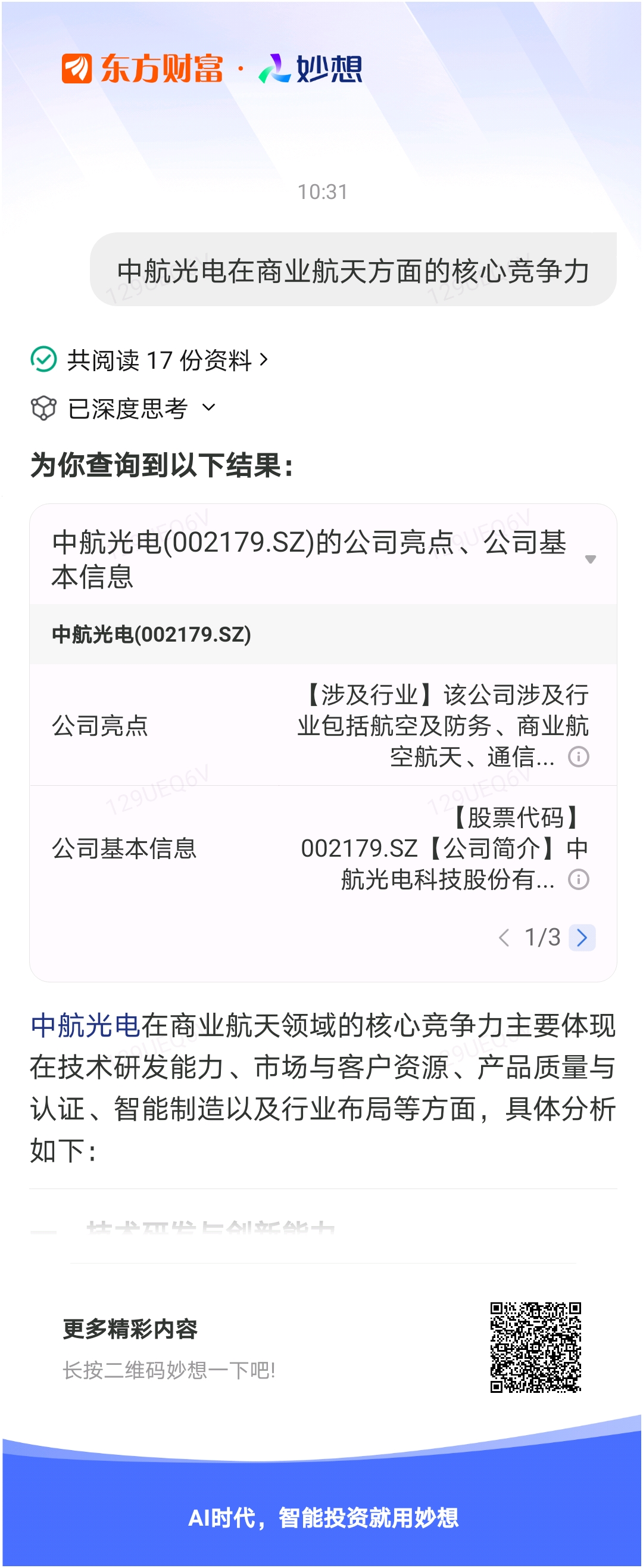 #@妙想,你怎么看?# @中航光电002179 妙想一下:中航光电在商业航天方面的核心竞争力