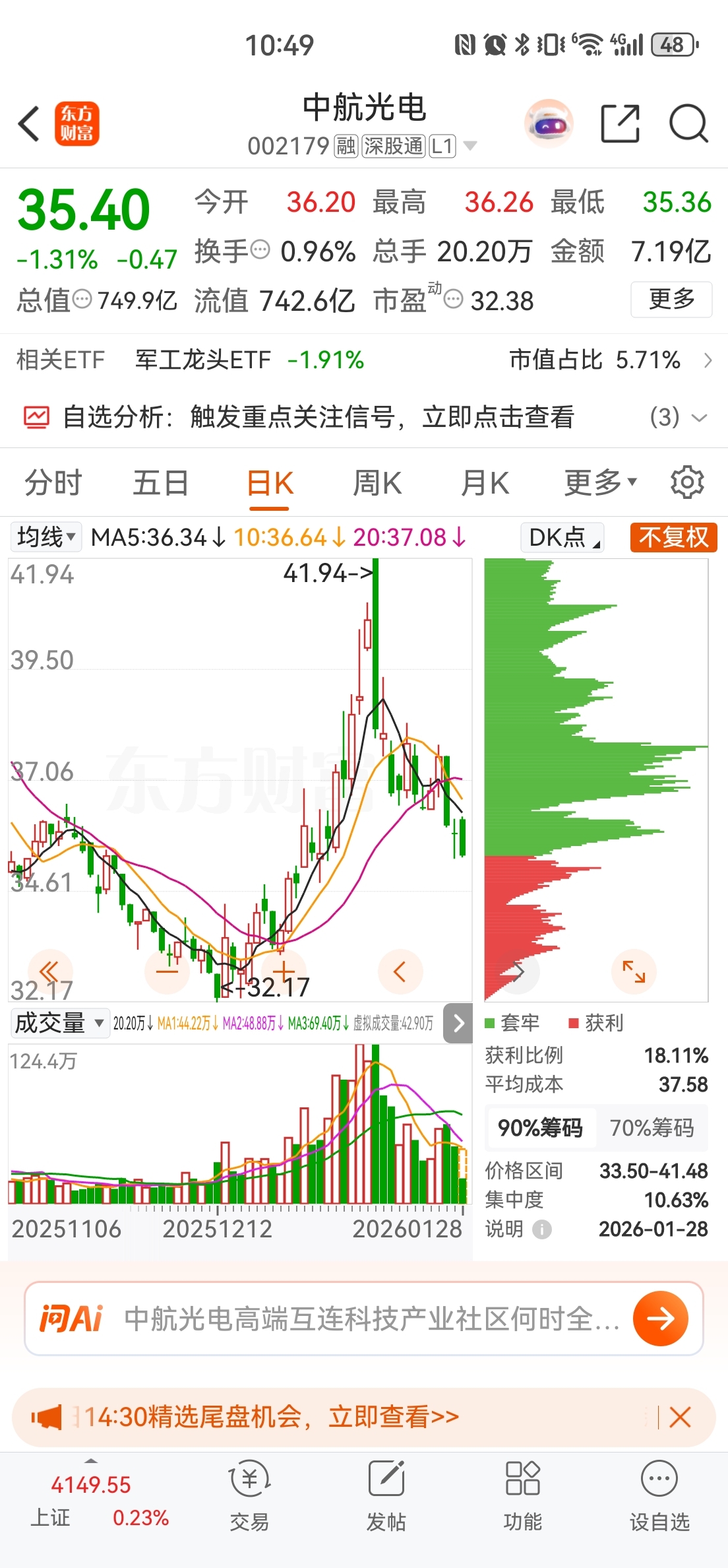 $中航光电(SZ002179)$ 大家套的很牢啊