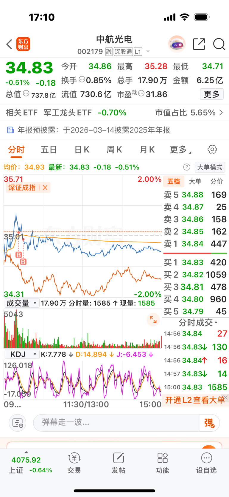 $中航光电(SZ002179)$ 从最高42回调到34左右,并且量能也极度萎缩,做好为航天板块的白马股,今天进去冲动了一点,35.05元,但目前位置进去收益应该远大于风险,中期锁仓过节!
