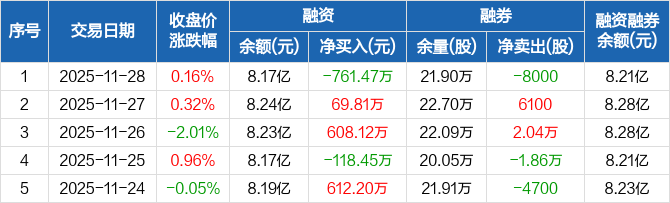 纳思达:融资净偿还761.47万元,融资余额8.17亿元(11-28)