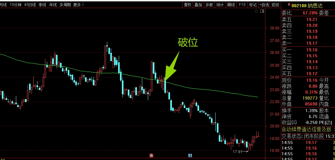 $纳思达(SZ002180)$ 中期走势在前面跌破大均线的时候,形成破位走势就已经变弱了,当时就应该大幅减仓应对,不然持有到现在很被动。目前来看,还是属于下降趋势,这种形态不考虑参与,不折腾,也不要抄底。#炒股日记# #收盘点评#