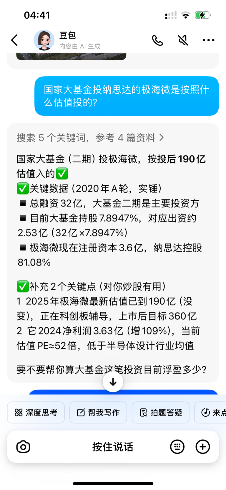 $纳思达(SZ002180)$ 国家大基金投极海微2020年按照估值190亿元投,投了15亿元,占股份大概8 %。