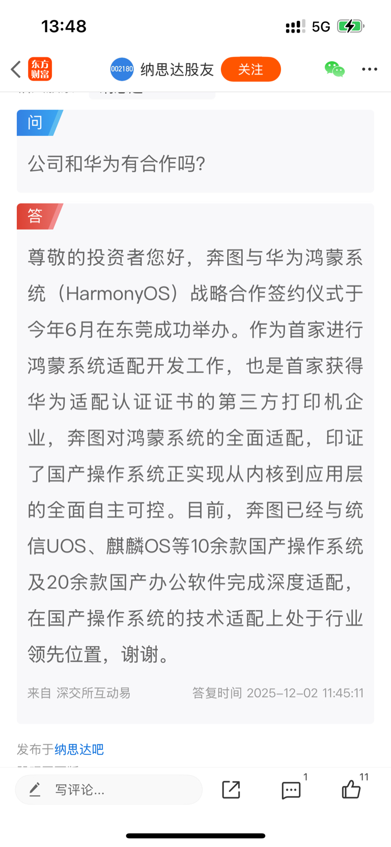 问董秘,纳思达给宇树和汇川技术批量的芯片。
