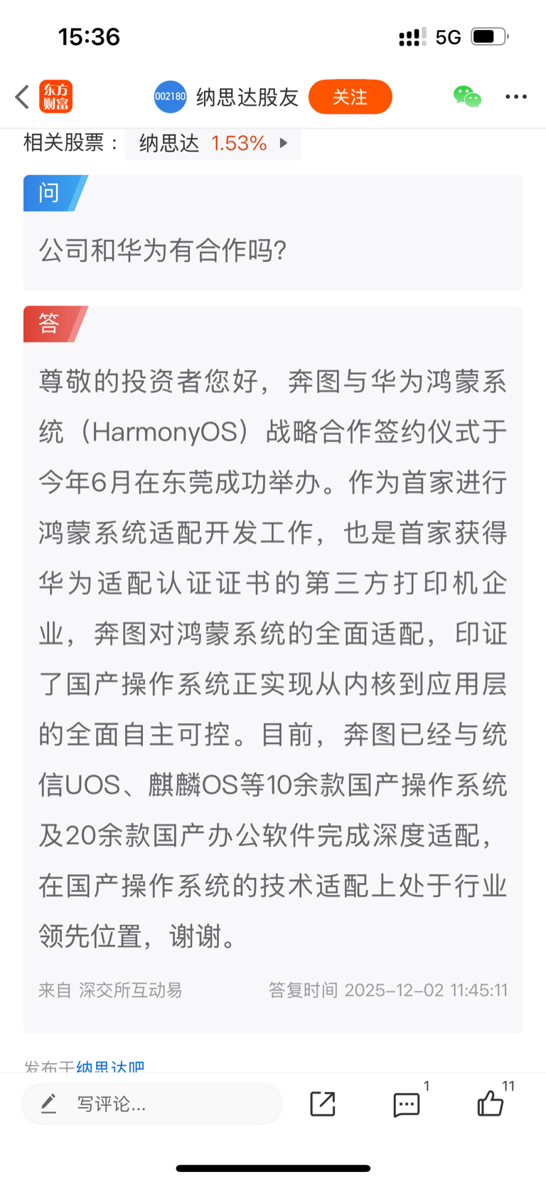 $纳思达(SZ002180)$ 跟华为合作