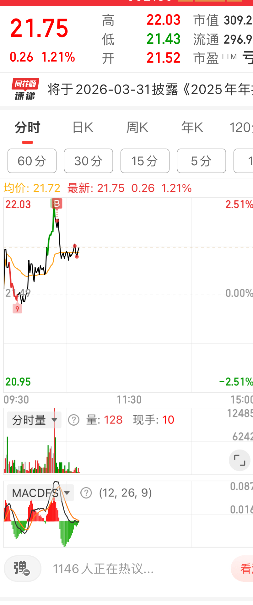看不懂了,为什么会回落下来,主力倒仓的筹码已经够多了,上午这个行为,就感觉要突破22.11,不然也不会去追着加仓,下午这个回落看不明白,感觉周一有点危险了,看样子真要回踩20日线。