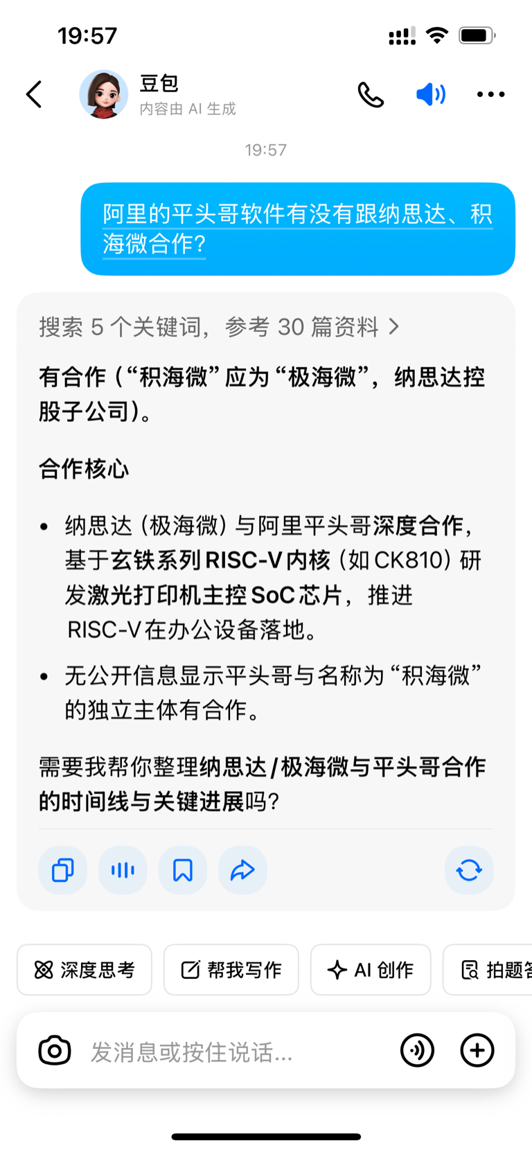 $纳思达(SZ002180)$ 珠海纳思达跟阿里平头哥有深度合作