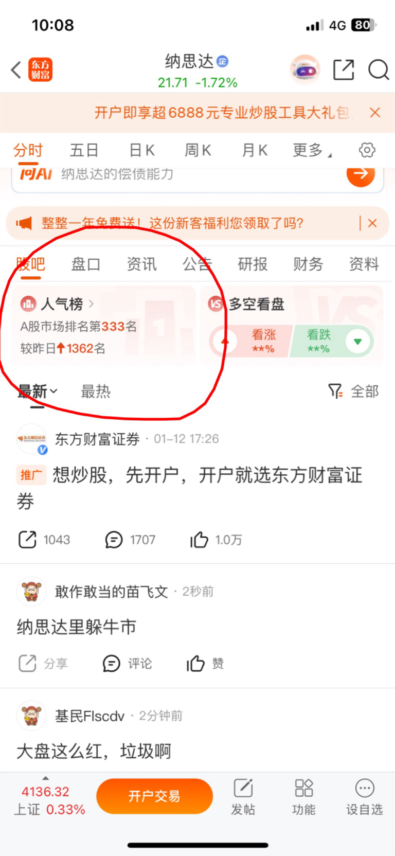 卧槽,人气值上升一千三百多名,这波要是进来的散户多,跌下来起码要洗半年起步