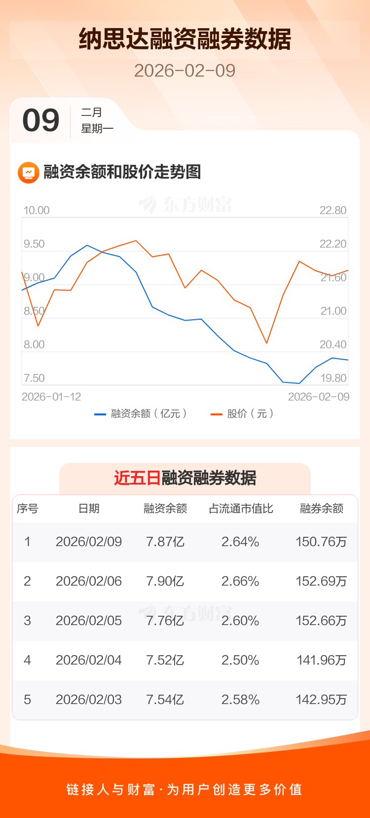 交易所最新数据显示,纳思达于2026年2月9日获融资买入4157.89万元,融资偿还4419.69万元,当日融资净偿还261.8万元。目前,该股融资余额7.87亿,占流通市值比例为2.64%。