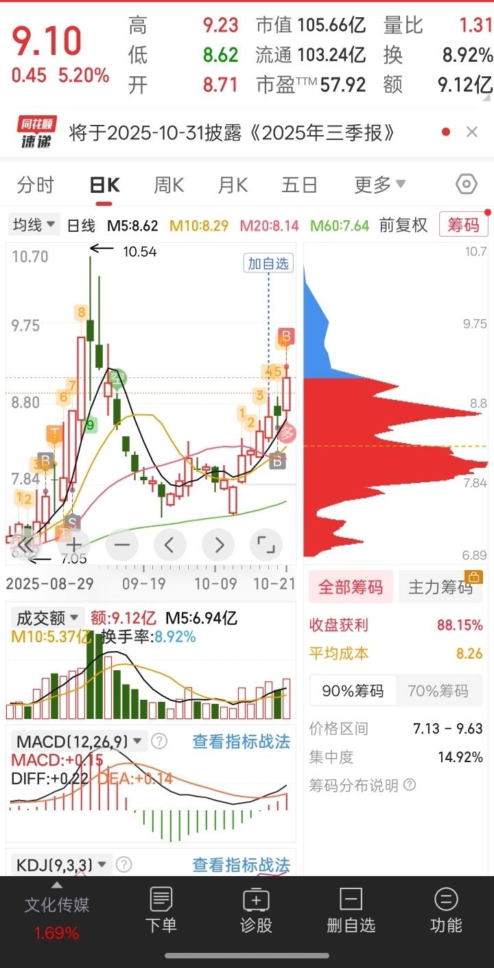 $粤 传 媒(SZ002181)$ 今天的多头之一,继续加仓,早盘后一直缩量 抛压不重 砸破均线果断加仓 懒得t 上升趋势