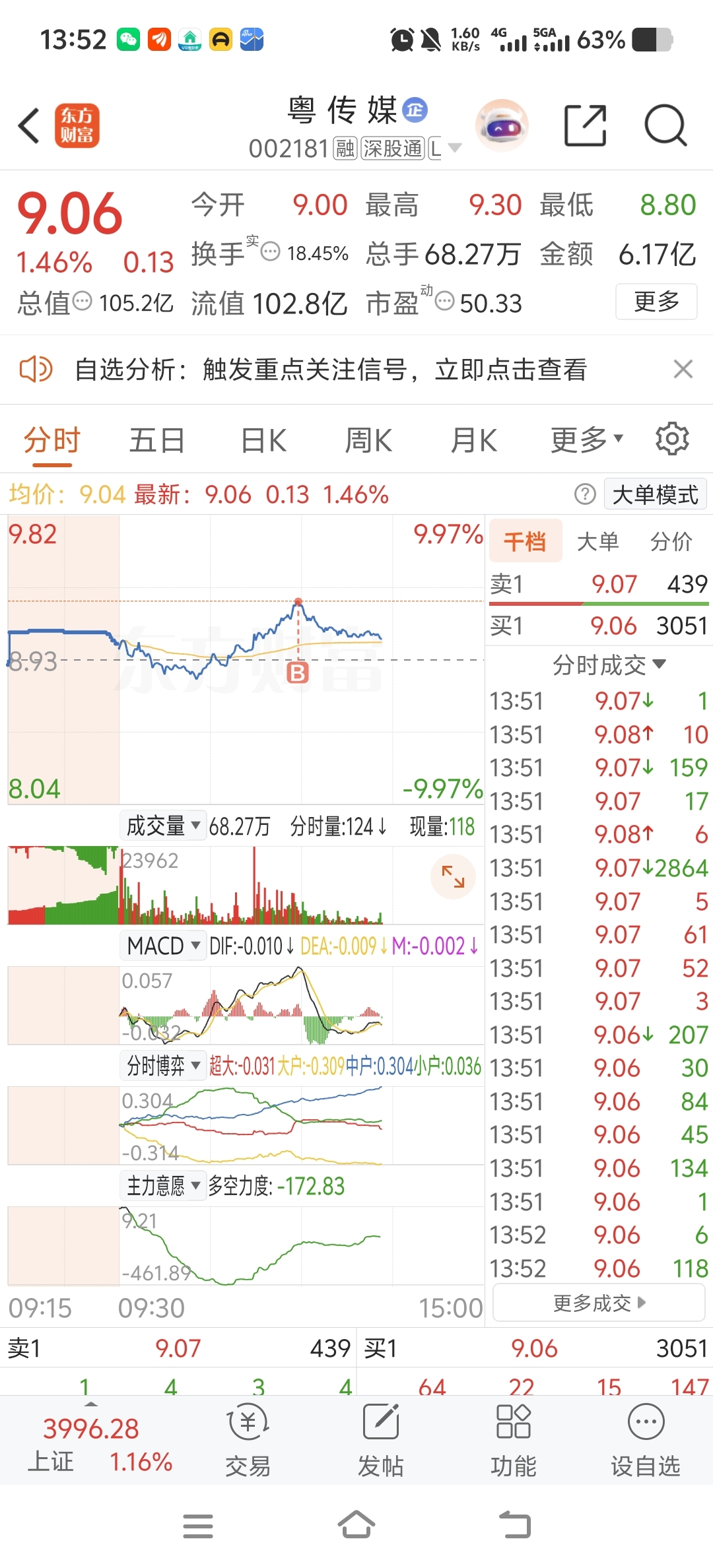 $粤 传 媒(SZ002181)$ 是因为我买了一手吗?