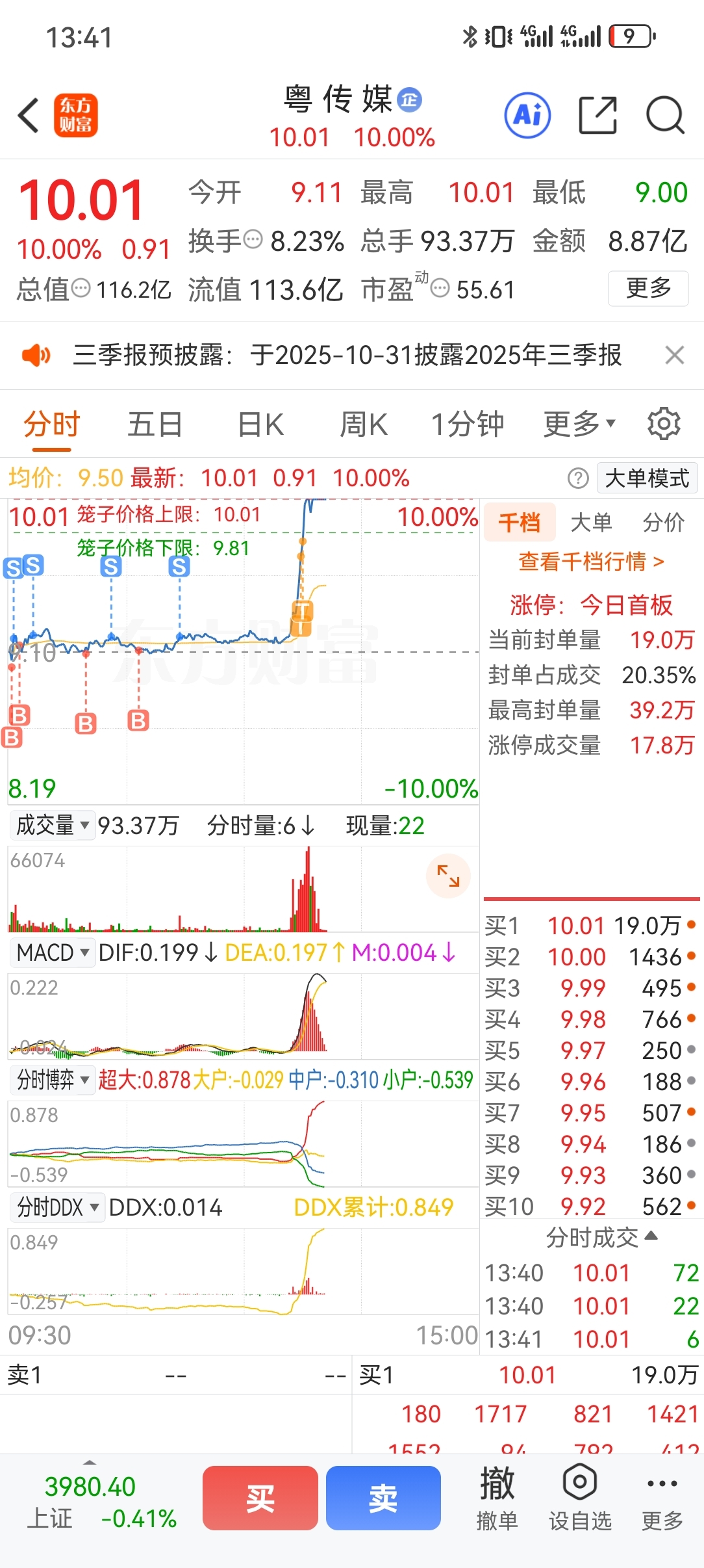 $粤 传 媒(SZ002181)$ 等了好久,终于等到一个板,以为这次没了