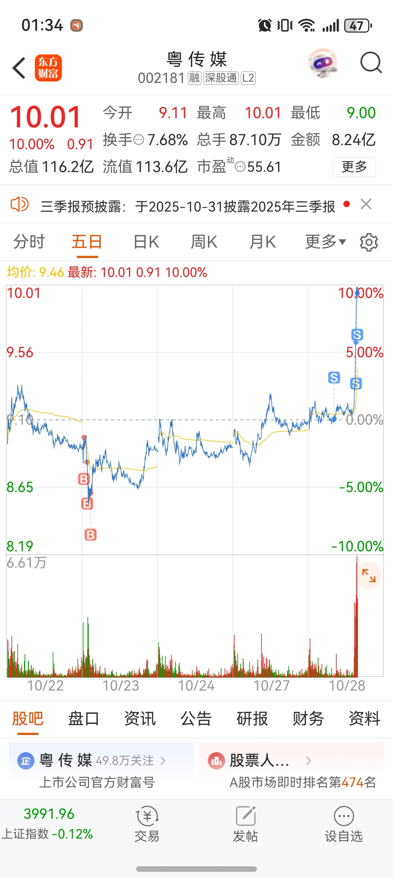 $粤 传 媒(SZ002181)$ 买在无人问津时,卖在人生鼎沸时!
