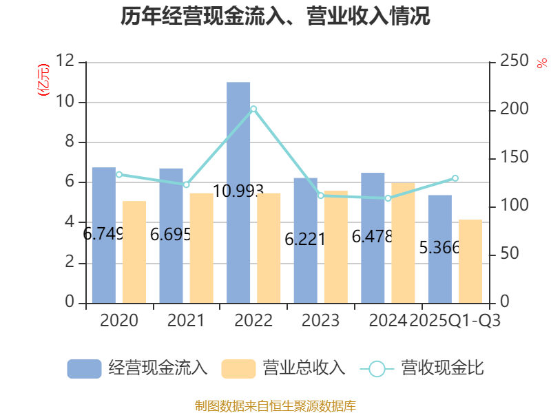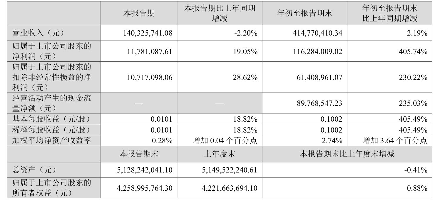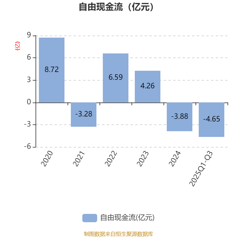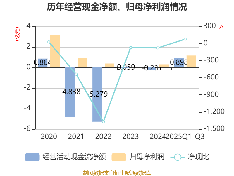 2025年前三季度,公司经营活动现金流净额为8976.85万元,同比增加1.56亿元;筹资活动现金流净额-5592.68万元,同比增加758.76万元;投资活动现金流净额-6657.18万元,上年同期为-2.67亿元。