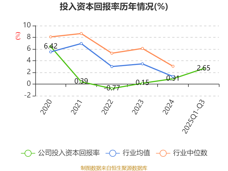 盈利能力方面, 2025年前三季度公司加权平均净资产收益率为2.74%,同比上升3.64个百分点。公司2025年前三季度投入资本回报率为2.65%,较上年同期上升3.04个百分点。