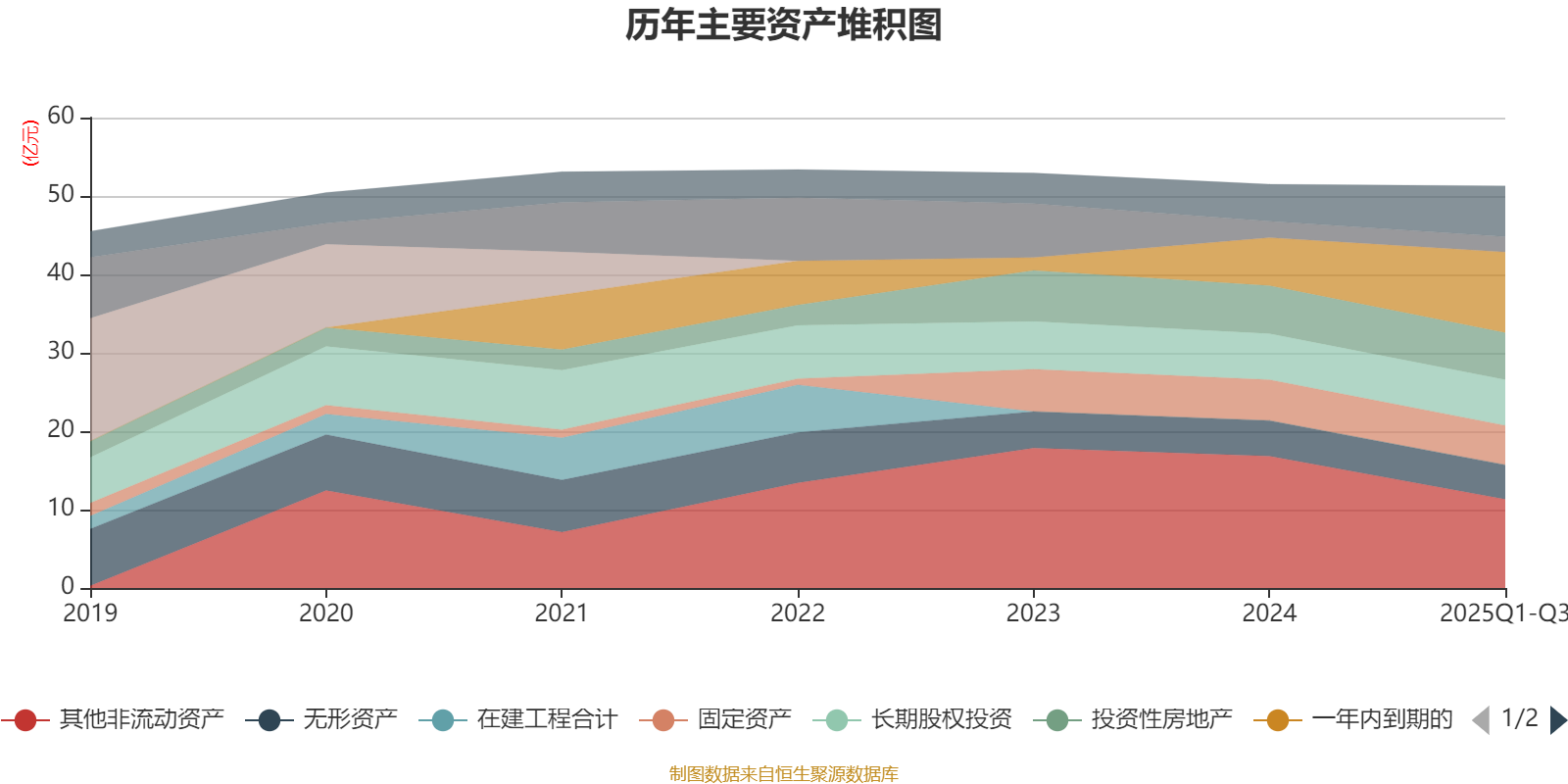 资产重大变化方面,截至2025年三季度末,公司其他非流动资产较上年末减少32.84%,占公司总资产比重下降10.64个百分点;一年内到期的非流动资产较上年末增加68.73%,占公司总资产比重上升8.24个百分点;其他非流动金融资产较上年末增加400.1%,占公司总资产比重上升3.9个百分点;固定资产较上年末减少3.44%,占公司总资产比重下降0.31个百分点。