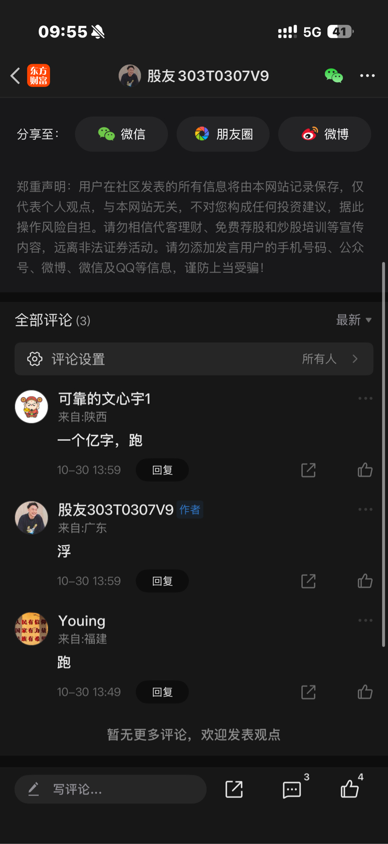 温馨提示: 1.根据《证券法》规定,禁止编造、传播虚假信息或者误导性信息,扰乱证券市场;2.用户在本社区发表的所有资料、言论等仅代表个人观点,与本网站立场无关,不对您构成任何投资建议。用户应基于自己的独立判断,自行决定证券投资并承担相应风险。《东方财富社区管理规定》
