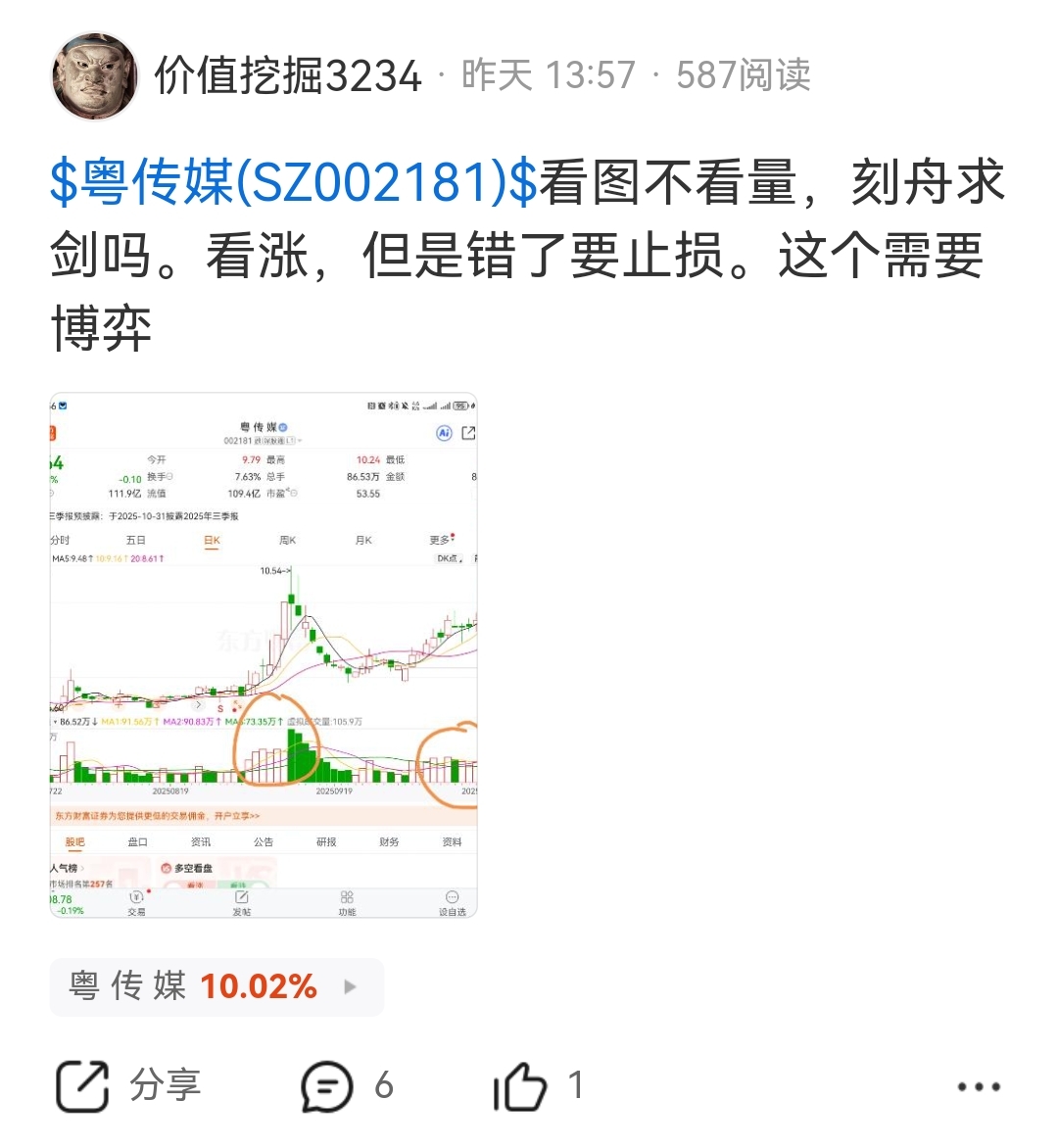 $粤 传 媒(SZ002181)$ 黑子说话,不要刻舟求剑了好吗,卖飞了吧