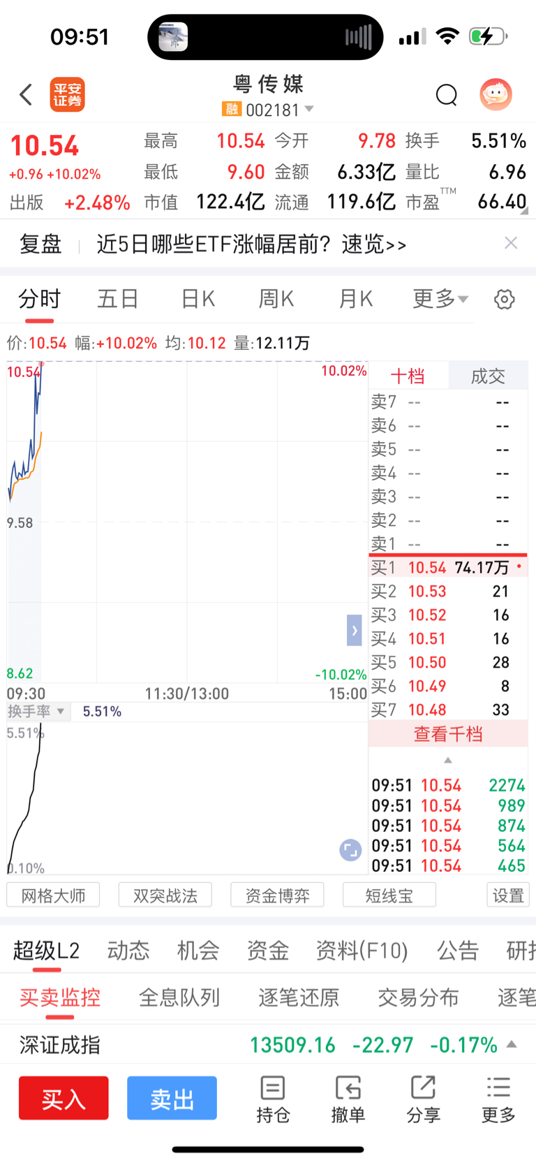 $粤 传 媒(SZ002181)$ 记得我跟你们说过的吧,大不了吐10个点回去,这样就拿住了,这个突破压力位,就看有没有人炒作,炒作的话还有版,距离全运会快了