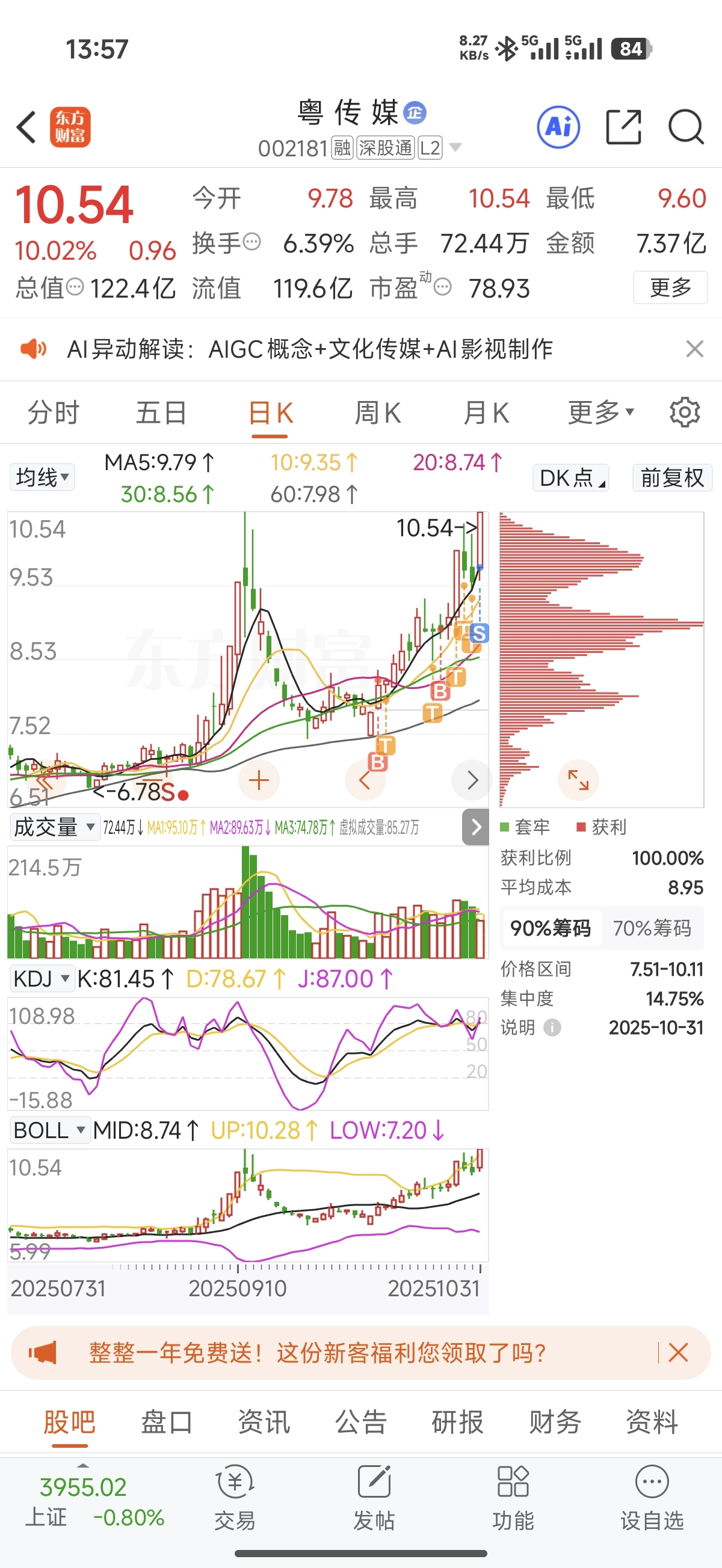 $粤 传 媒(SZ002181)$ 难受了,祝车上的发财