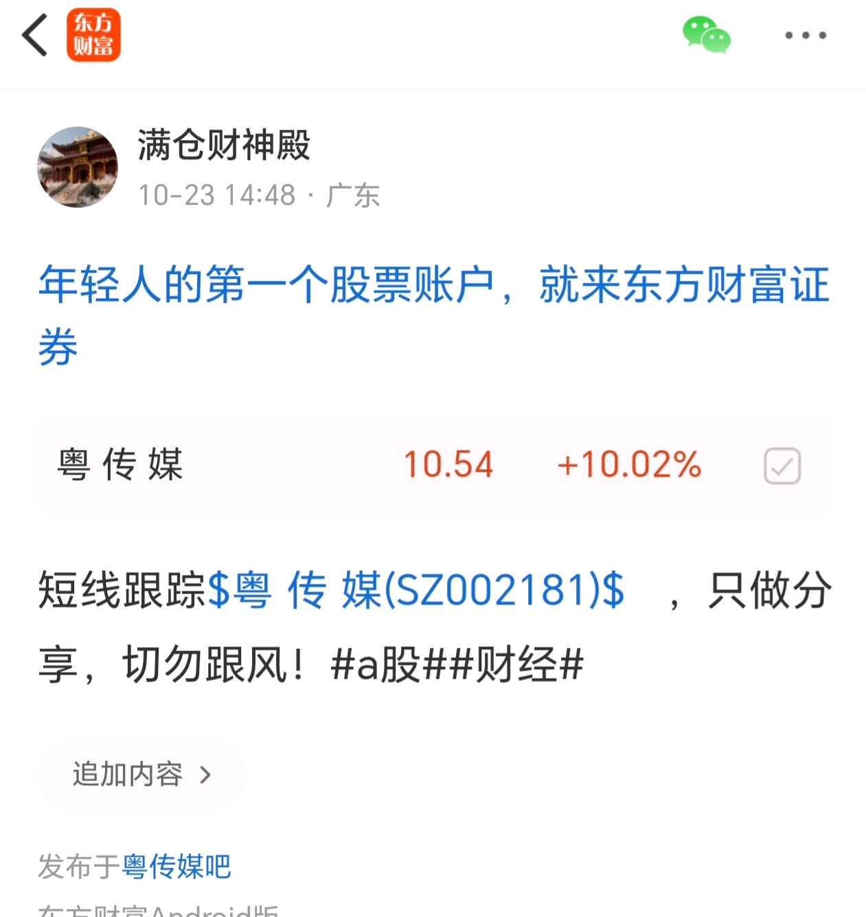 公开分享之后 拿下两个板$粤 传 媒(SZ002181)$ 属实不错!