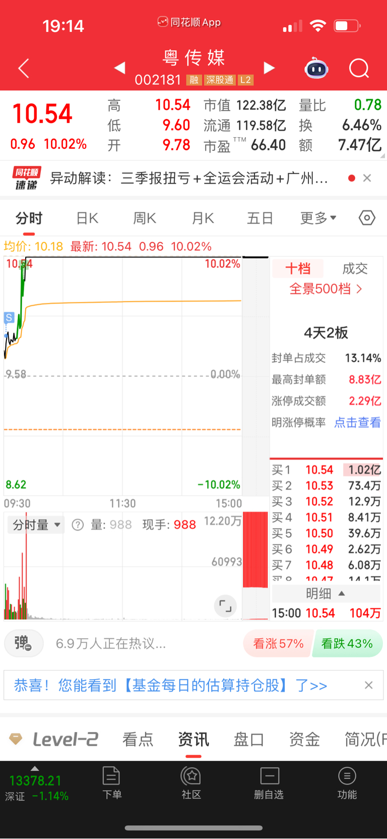 $粤 传 媒(SZ002181)$ 开盘吓跑了