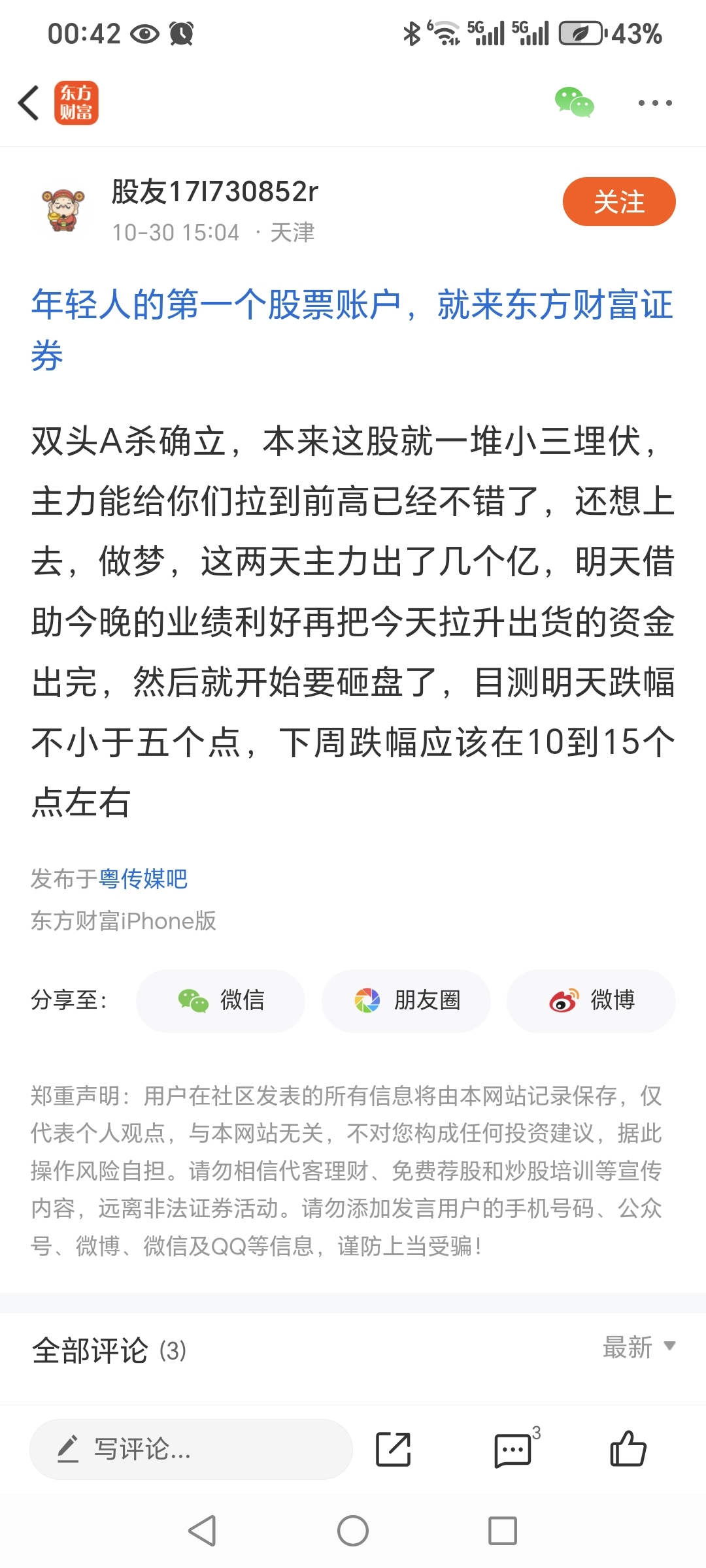 温馨提示: 1.根据《证券法》规定,禁止编造、传播虚假信息或者误导性信息,扰乱证券市场;2.用户在本社区发表的所有资料、言论等仅代表个人观点,与本网站立场无关,不对您构成任何投资建议。用户应基于自己的独立判断,自行决定证券投资并承担相应风险。《东方财富社区管理规定》