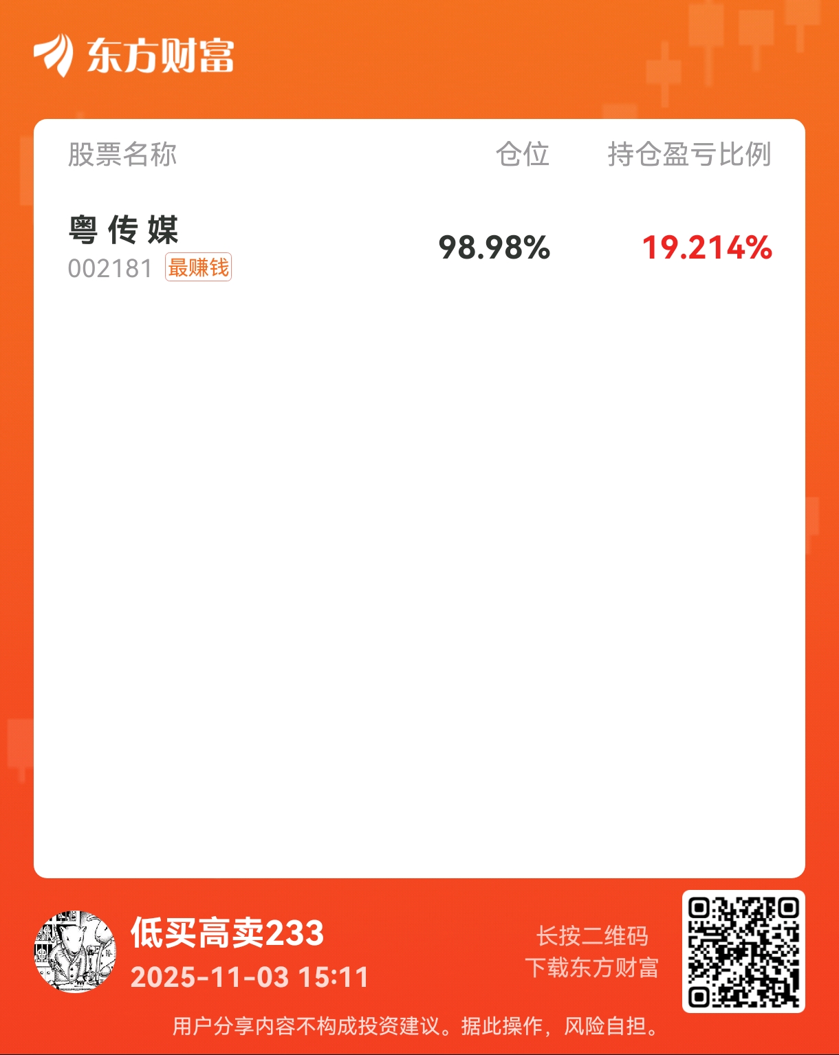 $粤 传 媒(SZ002181)$ 继续满仓 感觉良好