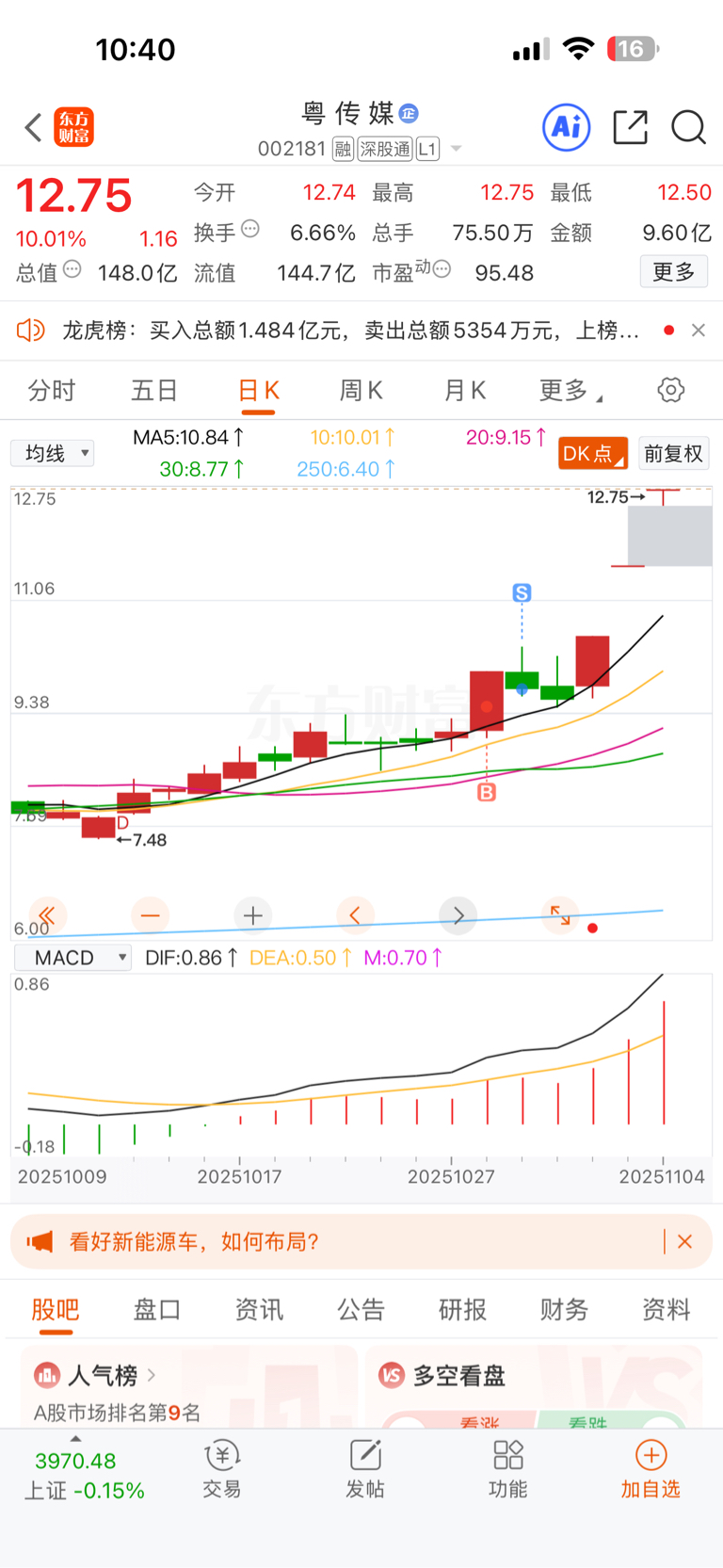 $粤 传 媒(SZ002181)$ 卖在启动前,销户了