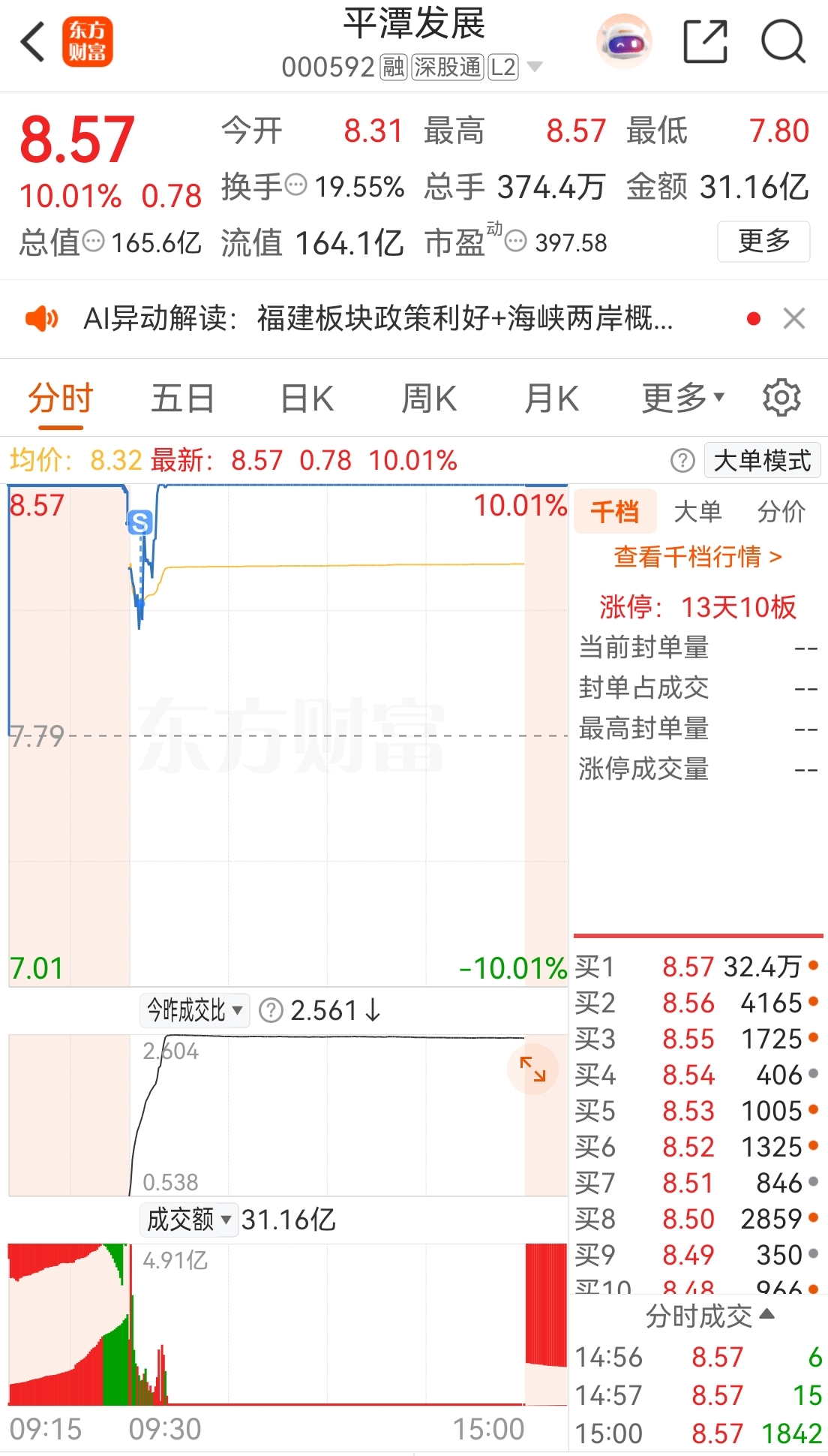 作为A股市场关注度最高的龙头股,平潭发展带领后排多只福建票涨停,依旧表现强势。